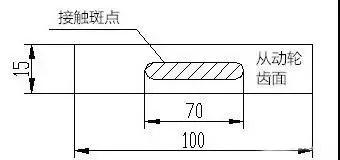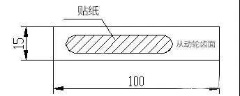(2)用白色貼紙膠在從動輪齒面沿齒長方向的無嚙合接觸斑點位置,齒高方向要貼在漸開線部分,即嚙合區域,然后再進行嚙合吃色,直至紙上漸開線部分全部覆蓋嚙合接觸斑點。