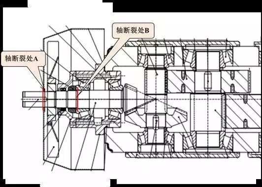 在生產實踐經驗得知,硬齒面減速機高速軸很容易發生斷裂,如某國外減速機的高速軸經常在兩處發生斷裂: